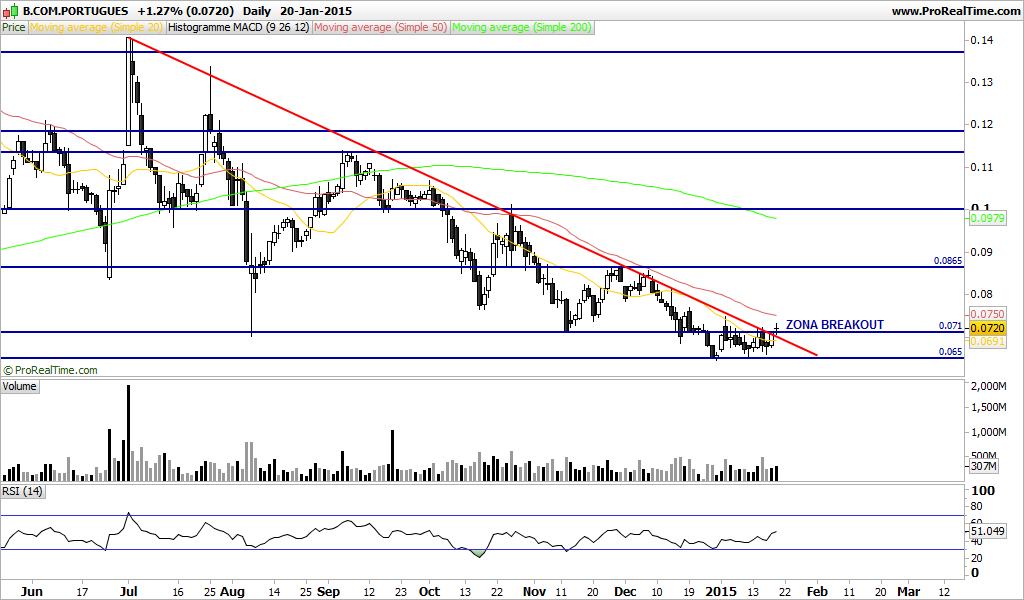 Pela análise técnica pura estamos a tocar na LTD e deveria ir para baixo, mas o mercado está à espera ansiosamente pelas declarações de Draghi na 5ª feira o que poderá fazer com que a cotação se mantenha ou até mesmo antecipe noticias positivas e suba. 5ª Feira e Domingo são os dias chave parece-me.