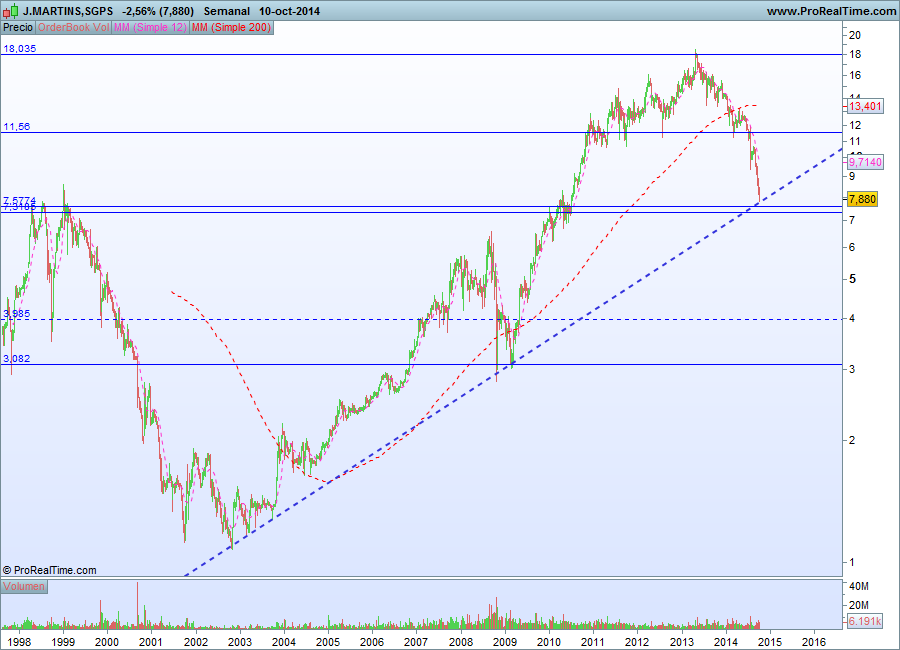 Para ver a JM a "renascer das cinzas" ou a inverter a tendência dominantemente descendente é quando a virmos a quebrar em alta as suas resistências, e não a chegar aos seus suportes.
