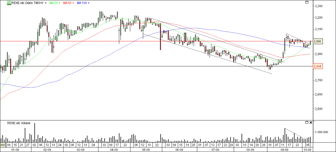 A REN hoje encerrou a 3.04 eur seguindo mais de 2 meses a lateralizar em redor dos 3.00 eur num intervalo de 0.06 eur.