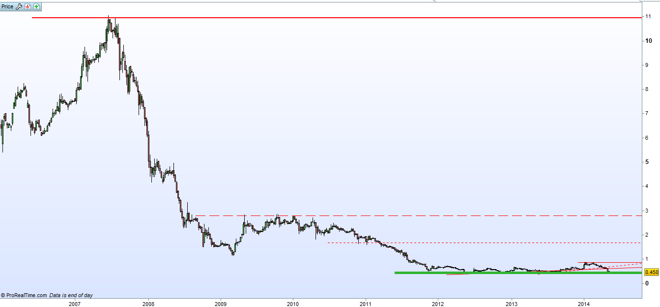 Anos e anos de prejuízos sem fim à vista, mega-dívida, mercados em contração permanente, enfim, um pesadelo em termos fundamentais. E quando é assim, não há AT que valha. No limite, os fundamentais vencem sempre, porque são a realidade.