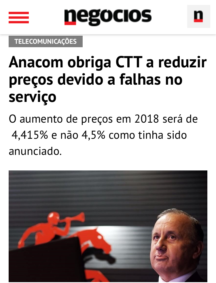 Os CTT têm mais em que se preocupar do que a diminuição de 4,5% para 4,415 duma coisa que é um aumento.