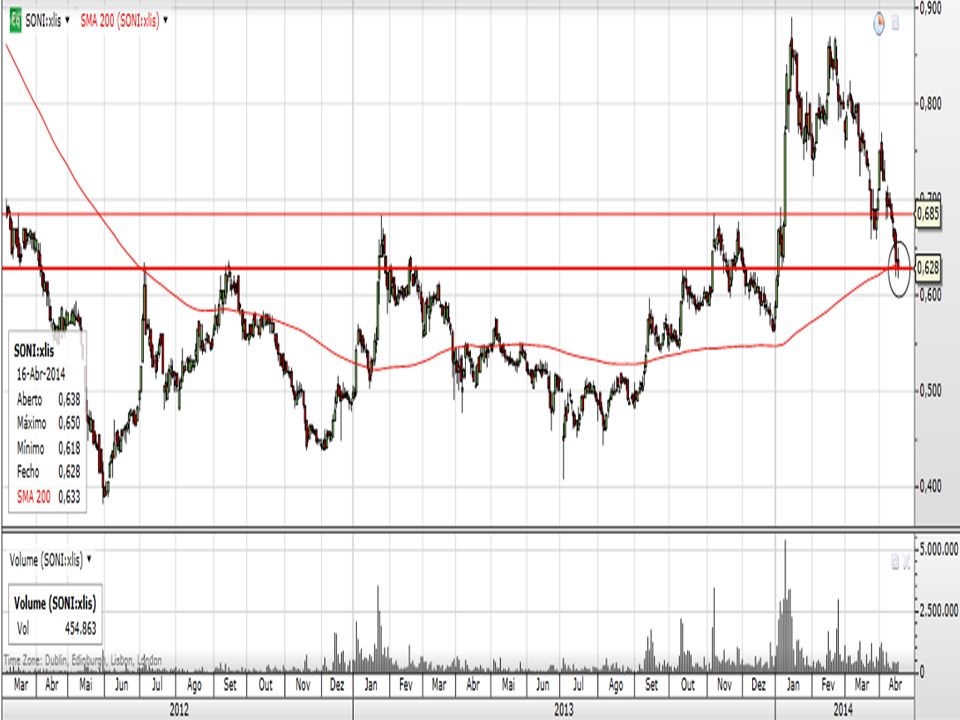 A SONI está numa zona crucial; tem um suporte neste valor e também a MM200. Seria importante aguentar aqui!!