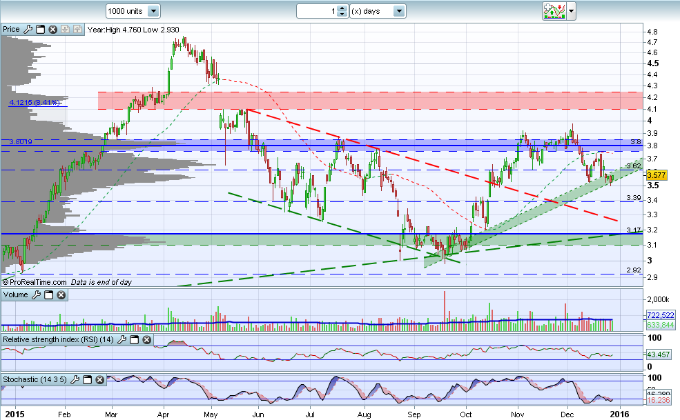 Adquiri novo lote a 3,60 (fruto de ter sido stopado nos CTT com lucro de 3% e, pelo que vejo, este titulo revela alguma fraqueza) a juntar ao lote anterior de 3,56.