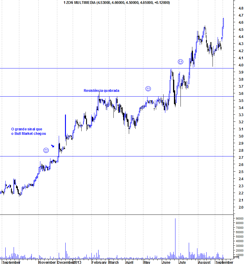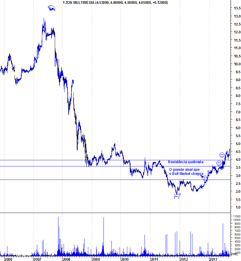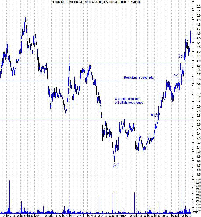Quando, no início de Dezembro do ano passado quebrou a zona de resistência entre os 2,7/2,75 coloquei aquela legenda no gráfico de que era o grande sinal de que o "Bull Market" tinha chegado. As constantes subidas não me fizeram mudar de ideias. Bem pelo contrário.