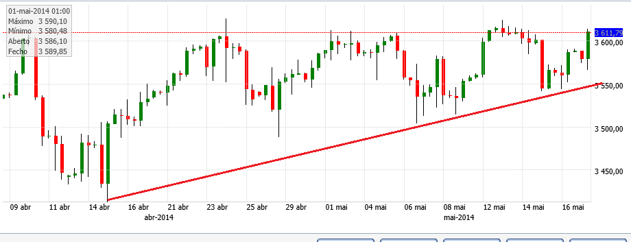 depois da abertura das bolsas americanas ainda deu para esperar que tivesse começado a correção mas depois voltou a máximos, agora sim, estamos no bom caminho, ja comprei mais um contrato e baixei o stop para 3620.