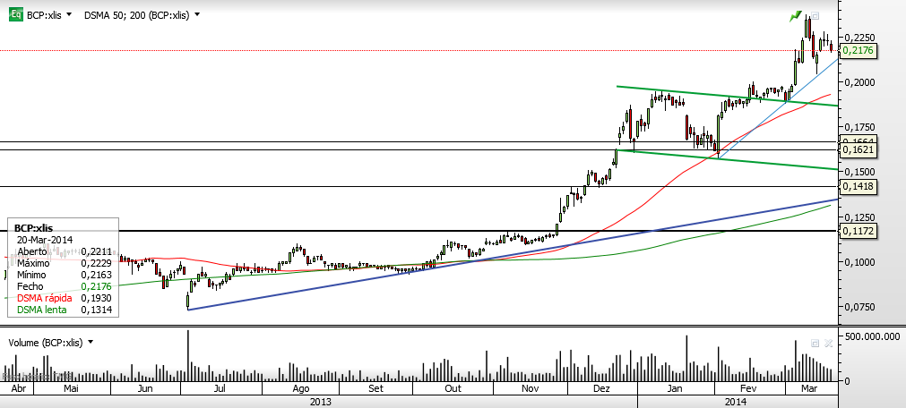 Depois de uma subida fantástica em 2013, a deixar adivinhar as tempestades ventosas de 2014, parece ter consolidado criando uma resistência junto aos 9,00 euros...