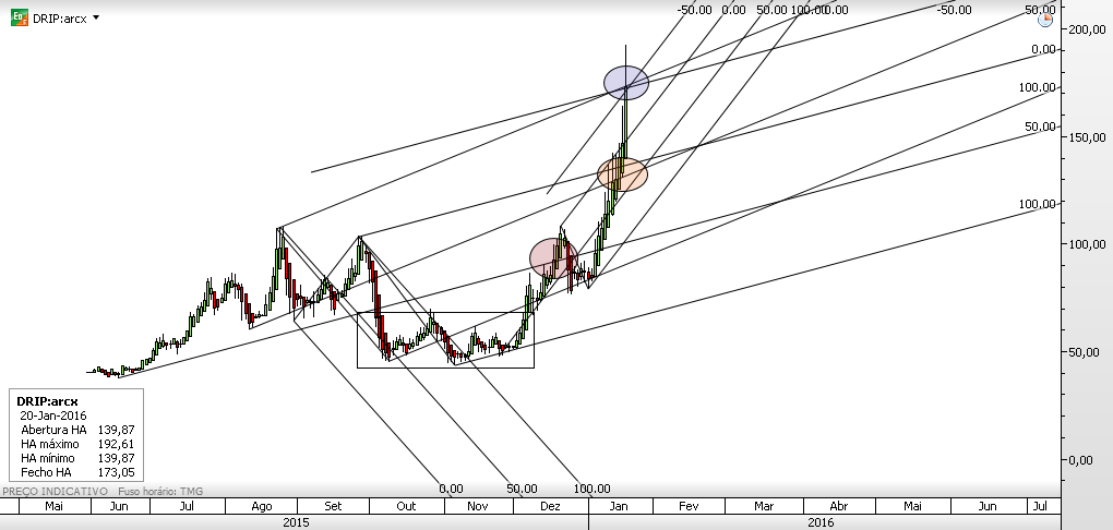 Gráfico 1: mais uma vez as mesmas linhas deram um forte sinal de compra que não podia ser ignorado. O target foi estabelecido usando o princípio aqui descrito até à exaustão. O gráfico 2 mostra a realização do mesmo negócio usando outras linhas que, curiosamente, apontavam para o mesmo objectivo. As linhas manterão pertinência e "validade" até dia incerto no futuro, pelo que quem quiser andar à procura de topos e fundos tem muito por onde escolher. E assim se concluiu um negócio para o FI Alquimia 2016 (posição encerrada antes do target).