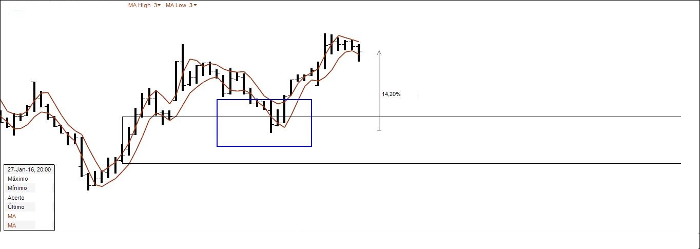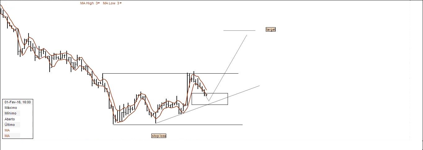 O Alquimista Escreveu:Uma oportunidade de investimento baseada na técnica aqui mencionada várias vezes: sma 3 low X sma 3 high x caixa de Darvas. Compra na caixa com target e stop loss assinalados. Negócio a realizar à margem do FIA 2016.