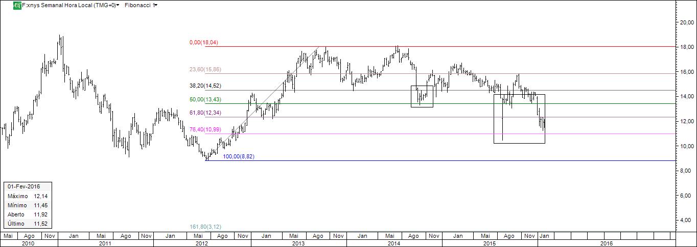 Recorrendo a ferramentas já aqui expostas e usadas para criar uma oportunidade de investimento para o FIA 2016. O objectivo final está traçado e a área compradora também desde que de um ponto de vista de price action se conclua que por aí há compradores. A stop loss será colocada em medida adequada ao risco que se pretende correr (no máximo 2% da carteira) tendo por base a volatilidade do instrumento.