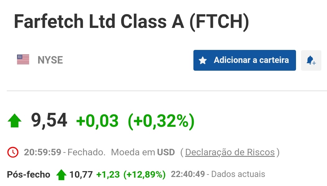 Sinceramente não acompanho muito a Farfetch, que vem desde o ano passado num brutal "bear market"...