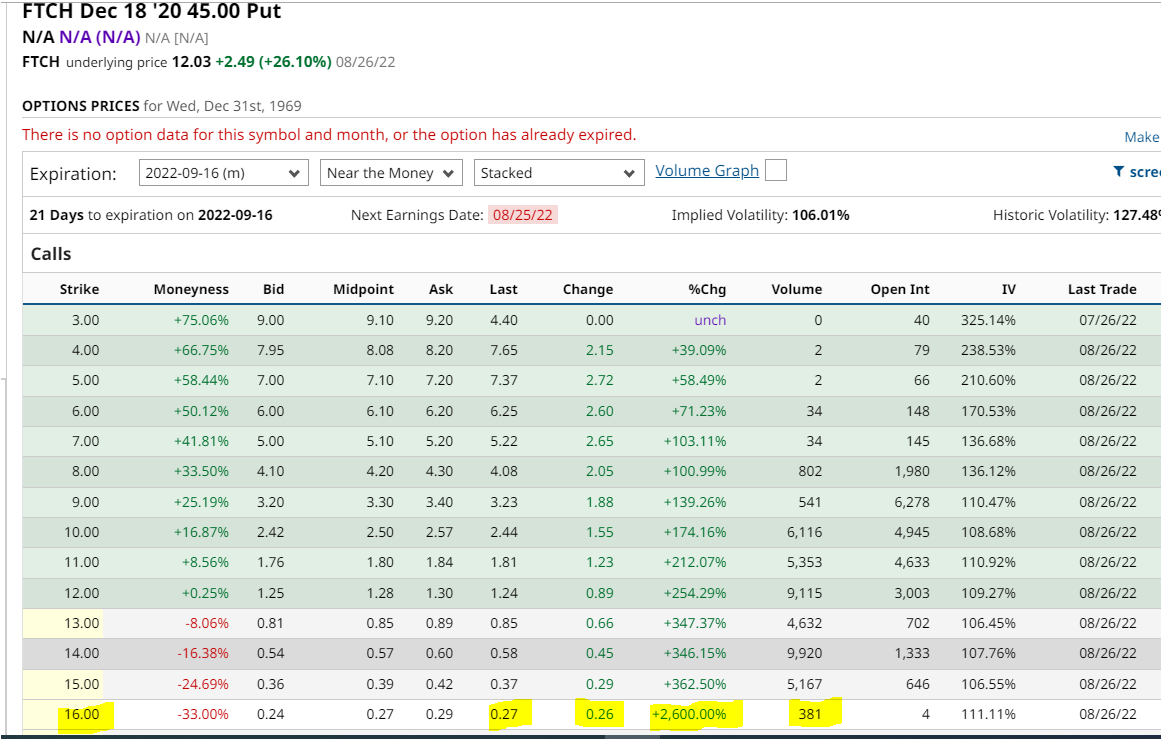 Obviamente que isto vale o que vale, mas não deixa de ser curioso que o prémio de uma CallOption com o STRIKE de $16,00 tenha passado de $0,01 para $0,27.