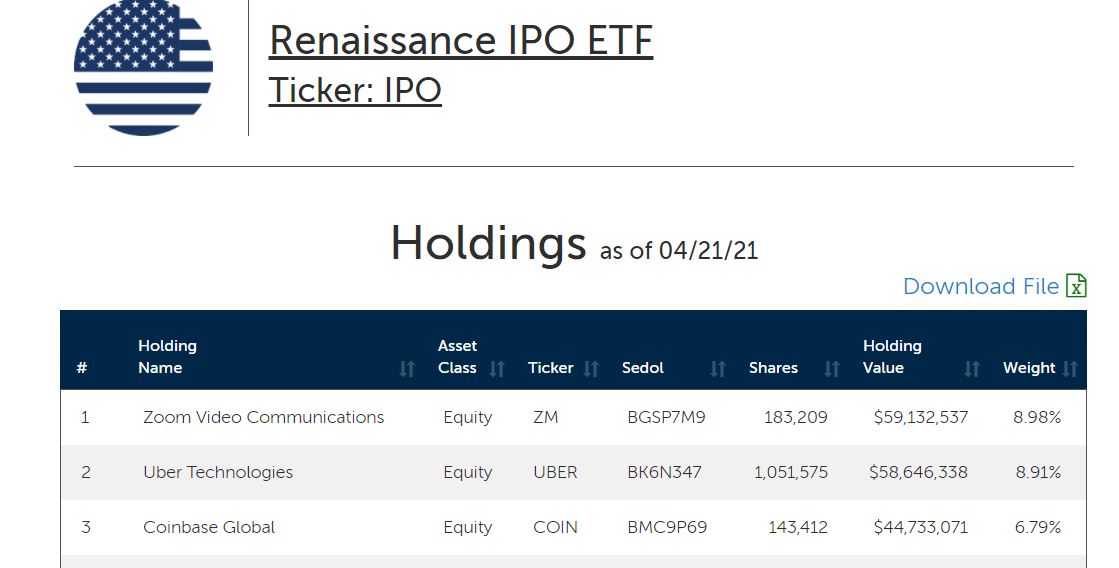 Coinbase foi diretamente para Top 3 no Renaissance IPO , com 6,79% do ETF.