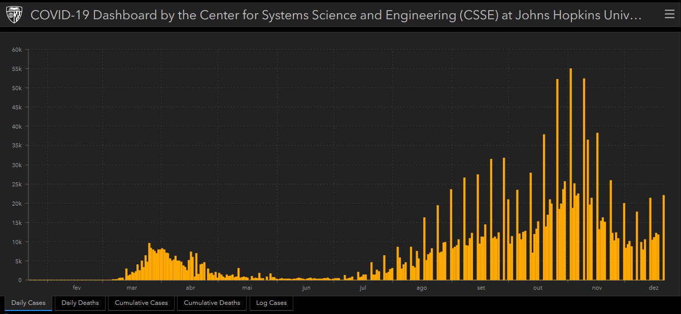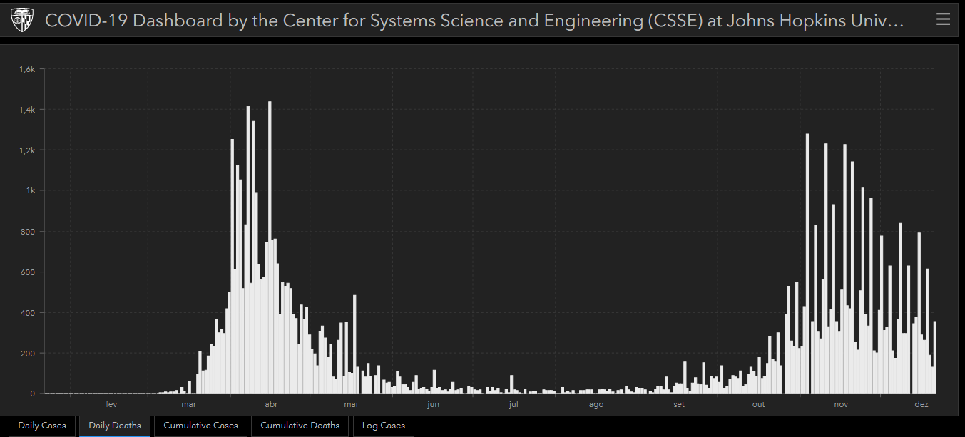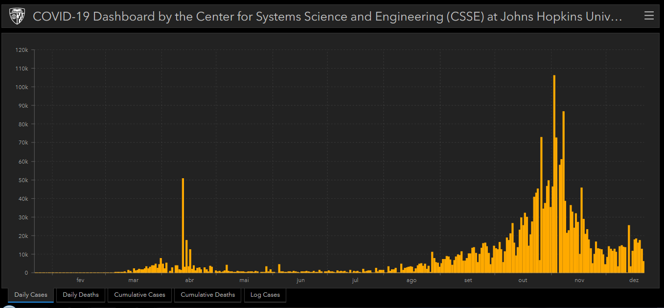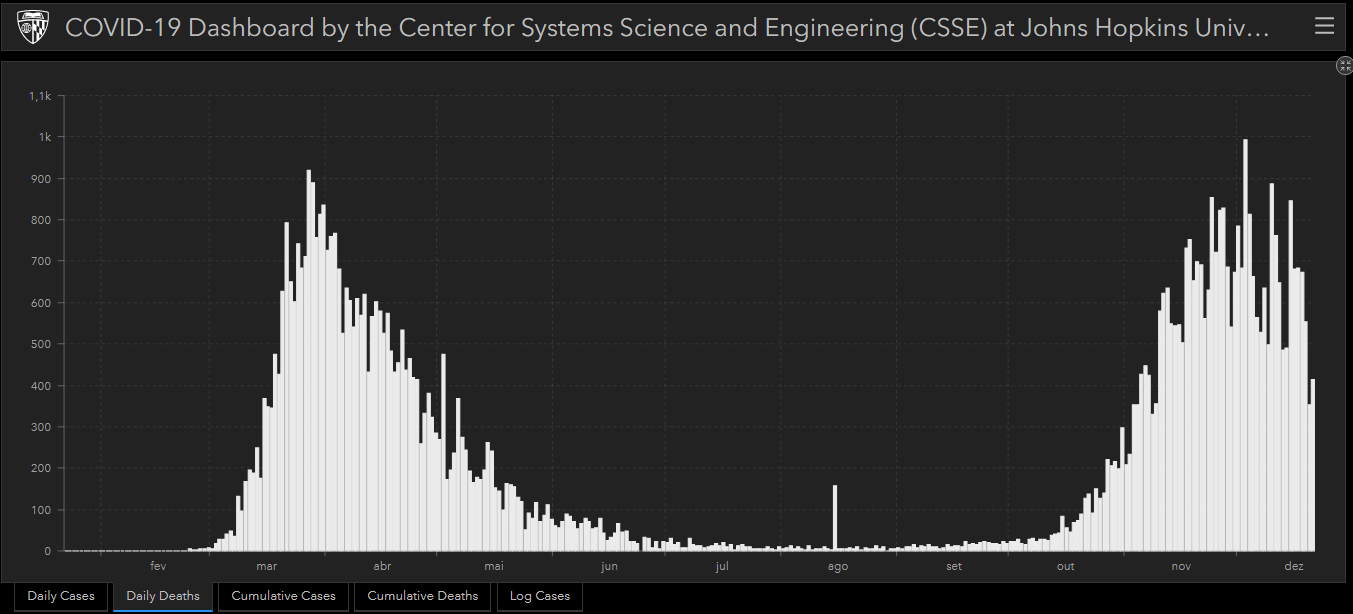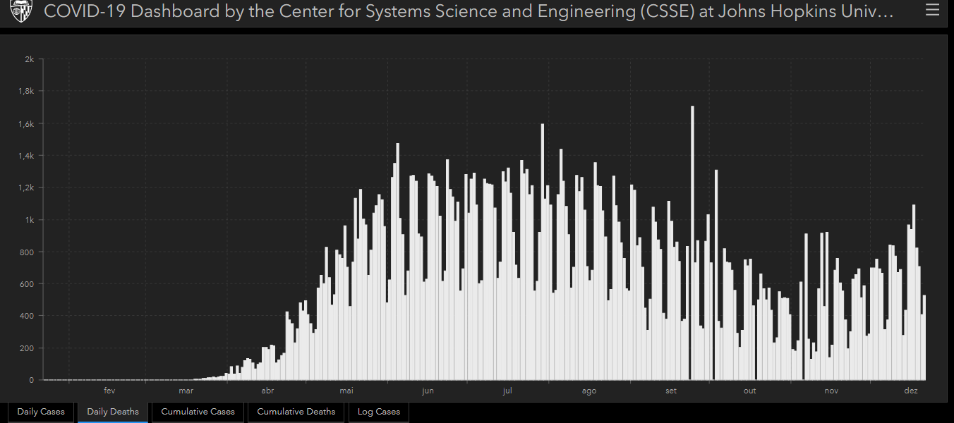 Podes verificar o que se passou no gráfico em anexo (3º gráfico Daily Cases) durante a "primavera" no Brasil e comparar com o que se passou na Europa desde o inicio ao fim da primavera...