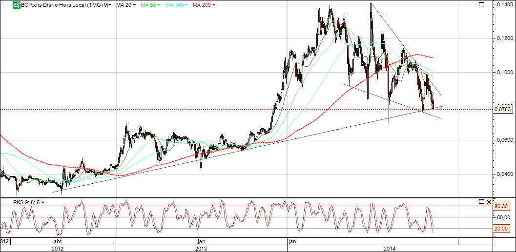 Com o BCP a testar a linha Maginot (.0775/.081), estou preocupado! Seria importante para o set up de curto prazo (tb do Psi20), que o BCP reagisse ao suporte.