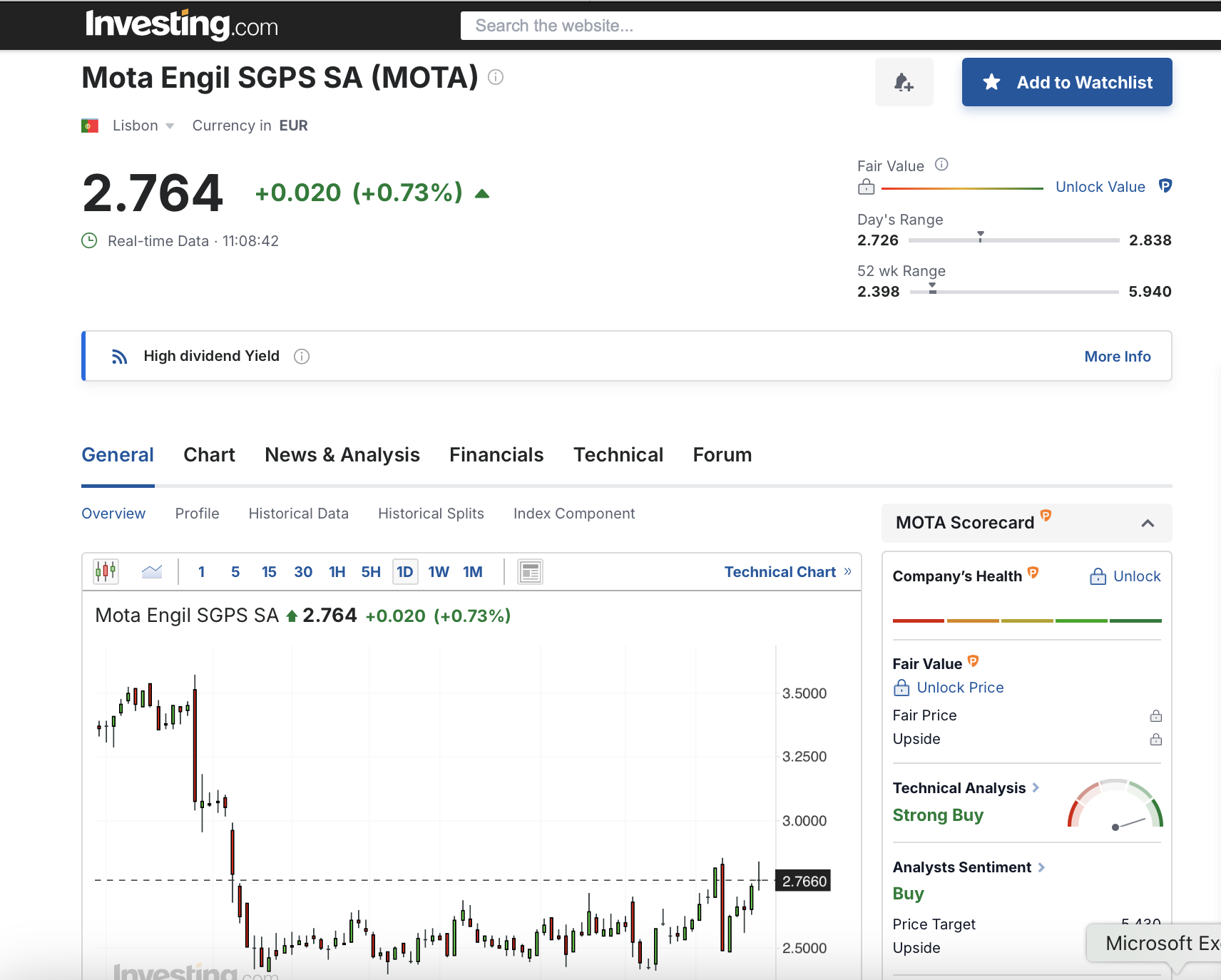 Investidor, a única coisa que falta aqui saber é se o fundo abytre consegue deitar mais abaixo a cotação da Mota. Se perder essa jogada, o abytre vira-se contra o abutre e terão de comprar fazendo a cotação disparar. portanto, o que alguém diz acima, um dia isso acontecerá, só não sabemos quando.