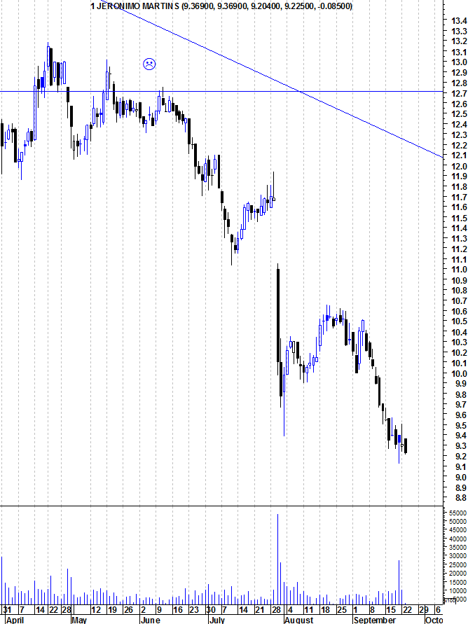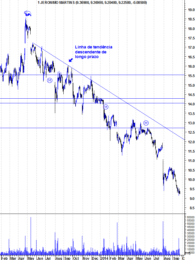 Aqui ficam os gráficos actualizados da Jerónimo Martins, que mantém a sua tendência descendente em todos os horozontes temporais.