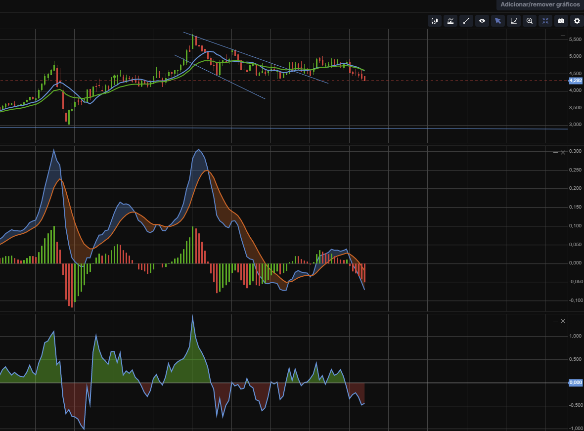 3) inversão da MACD para breve.