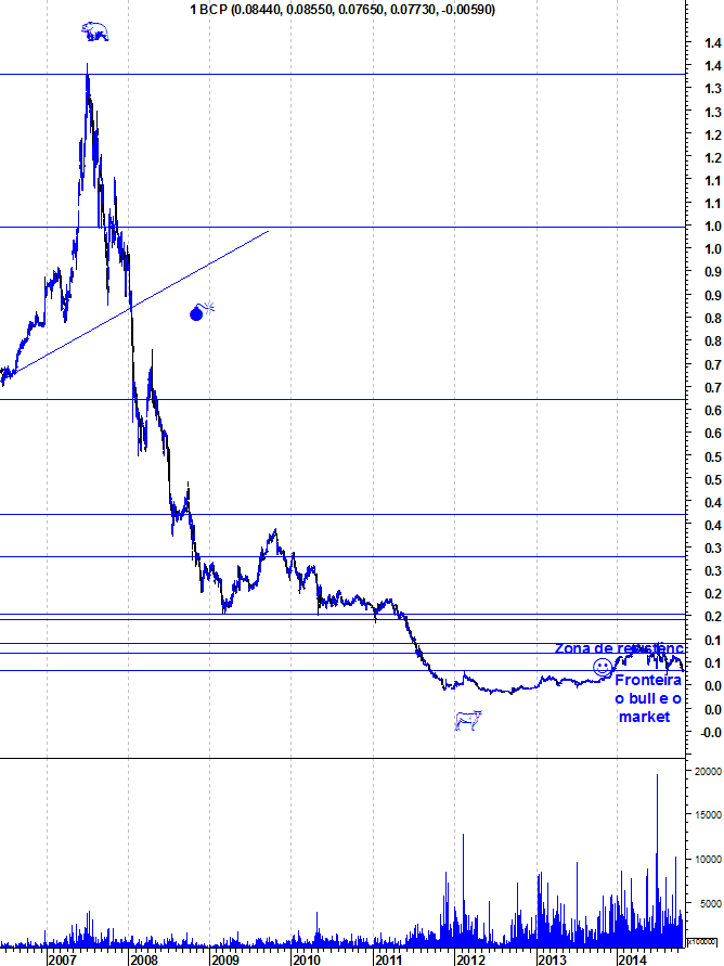 lebro-me de um "maluco" quando o BCP já estava abaixo de um euro, mas não longe disso, vir mostrar uma figura com uma projecção do BCP a 30centimos.... era absolutamente ridicula, impensavel... absurda...........