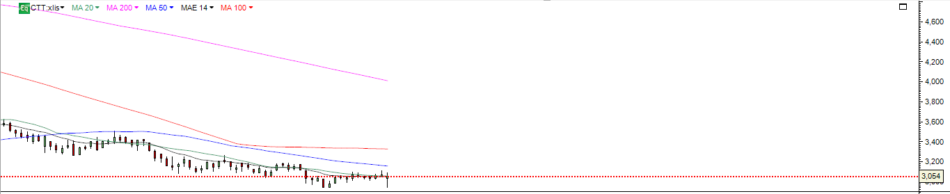 Mas sejam curtos ou vendedores de grandes posições a zona da MM50 é uma zona apetecível de venda com a recuperação técnica e com queda nos resultados de 48% , e a zona 3.16 deverá ser uma zona de forte venda .