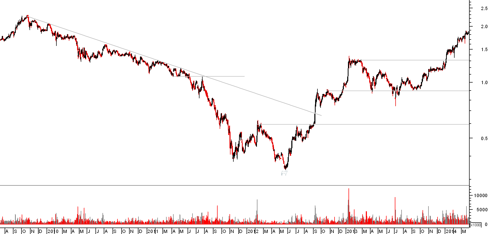Desde Setembro 2012, altura em que o BPI quebrou a resistência dos 0,60€ e os touros tomaram de assalto o título, já leva cerca de 200% de valorização.