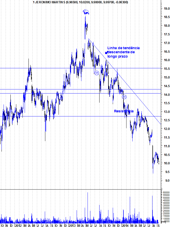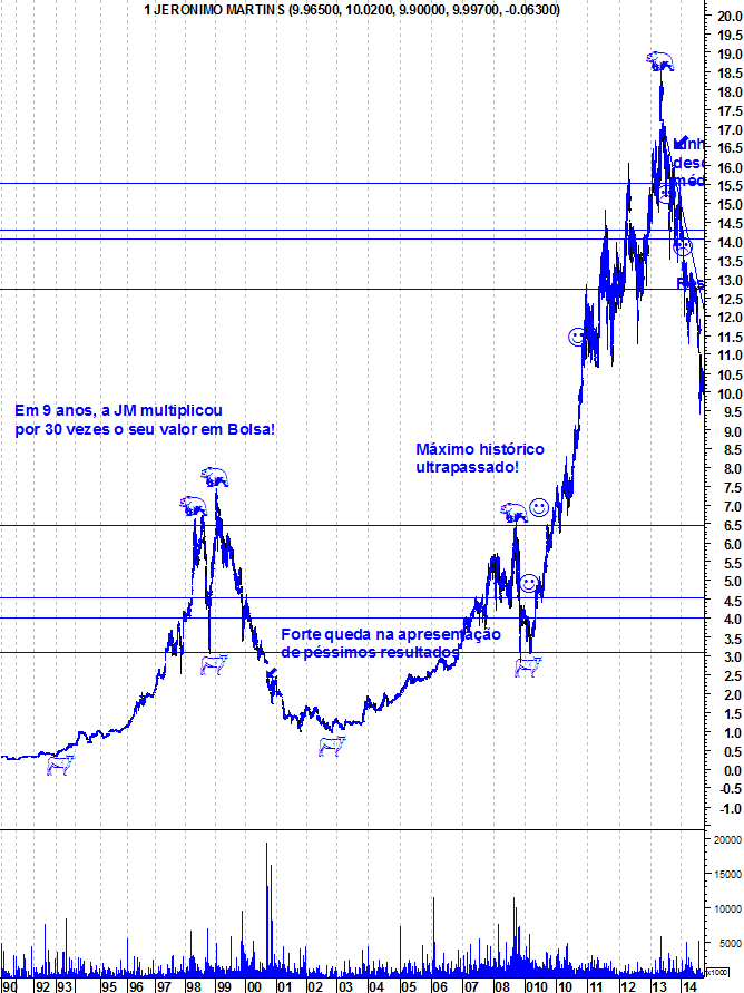 Quem faz um investimento como referes para o longo prazo deve ter sempre em conta a margem de segurança e não consultar um gráfico na hora de investir. Quem se deixa influênciar pela bela tendencia ascendente que a JM apresentava quando estava a 18 acabou por ignorar o preço.