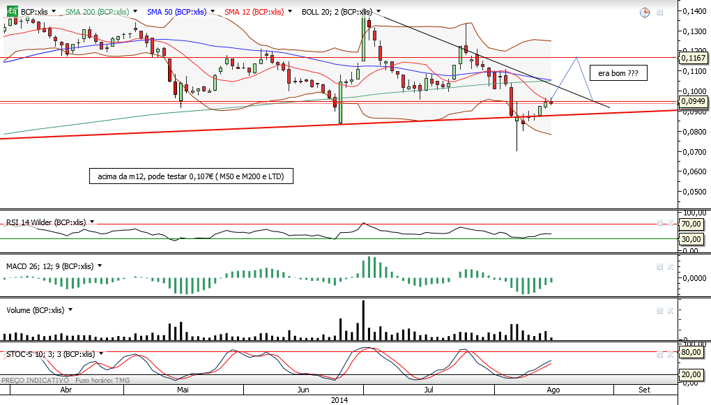 O BCP encontra-se em consolidação no horário continuo dentro na expectativa da quebra dos 0,098 - 0,1