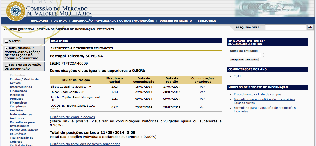Não sei onde encontraram a informação que as posições curtas estão a aumentar, pois desde 14.08.2014 que, são as mesmas 5,09%