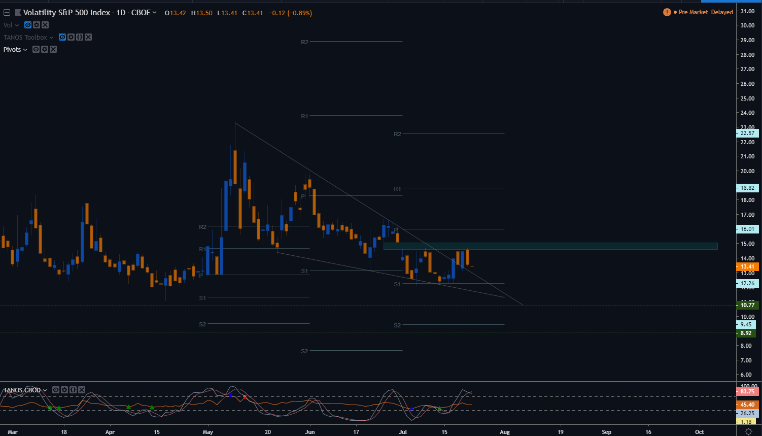- Vix continua em downtrend com dificuldade em passar 0s 14.50 mesmo tendo um gap