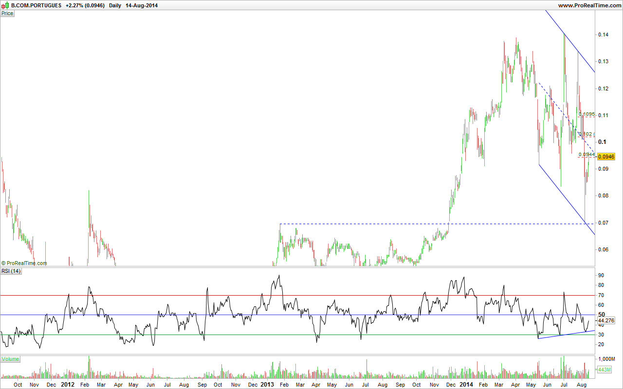 concordo com os 0,093-0,096 entrei em 0,08, reforcei hoje nos 0,093, a pensar q talvez consiga quebrar a resistencia até a proxima nos 0,103 e depois 0,11, vamos ver se o BES, ja passou um bocadito.