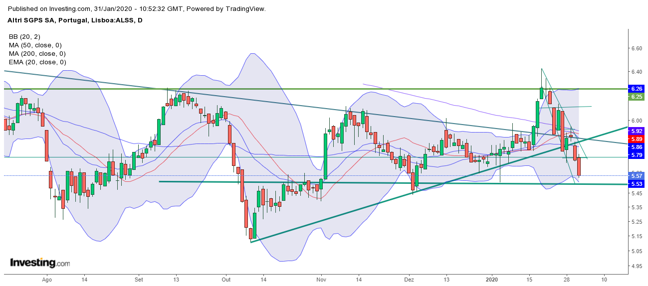 Quebra da LTA em baixa depois quebrar em alta a LTD e ter "embatido" nos 6,20€. Somente a zona dos 5,50€ restará como último reduto.....