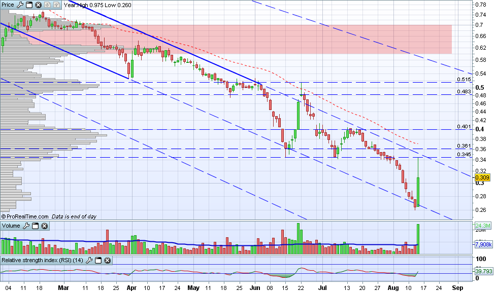 Este título ainda é um risco grande... há um mês atrás foi dos 0.34 ao 0.48.... e pouco depois voltou aos 0.27.