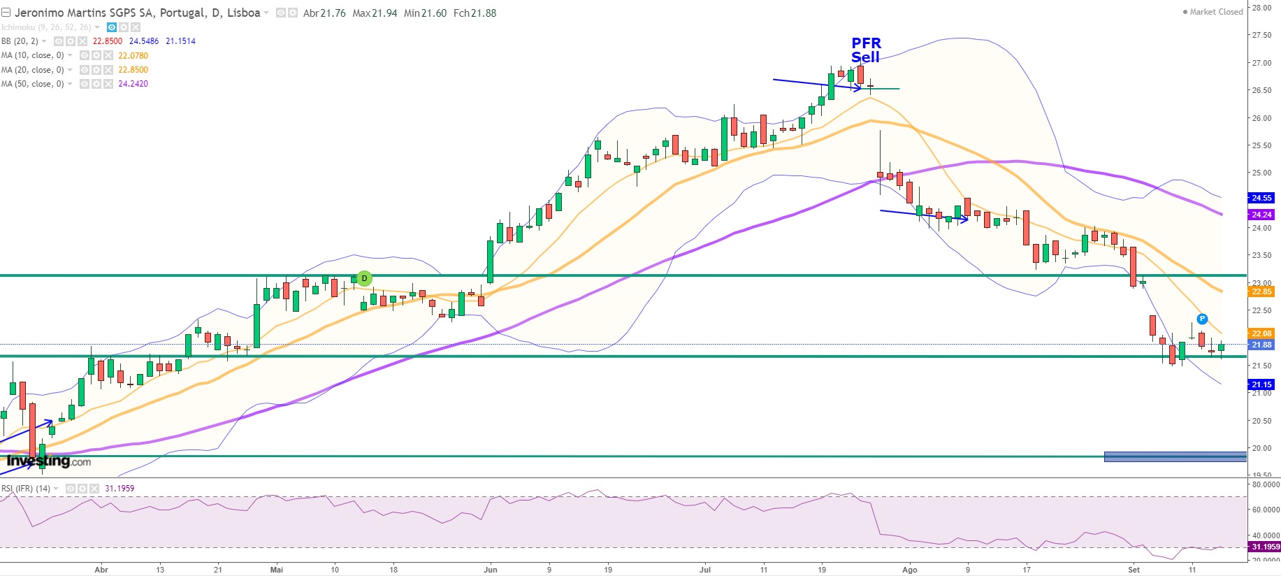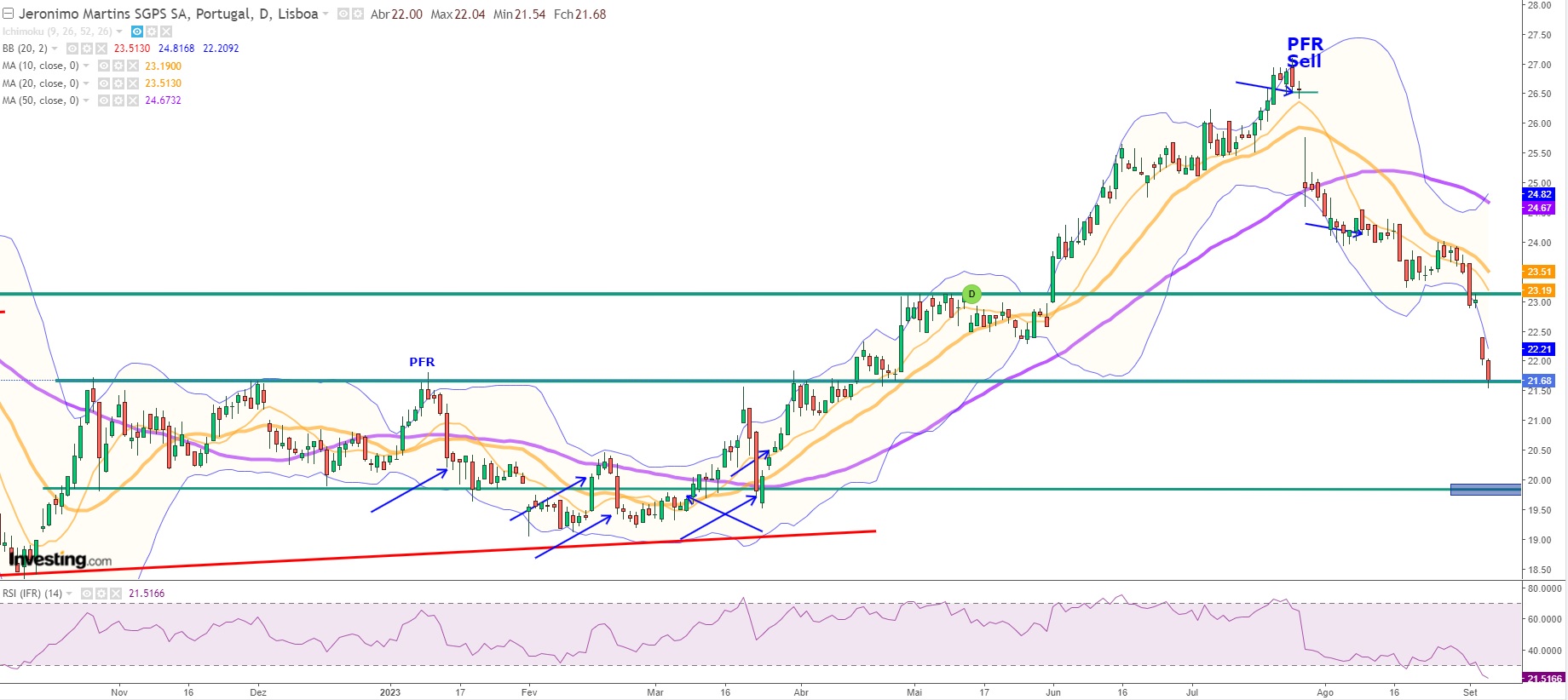E agora? Se neste nível não existir alguma reação é bem plausível um cenário de baixa até ao intervalo 19.20 - 20!!!