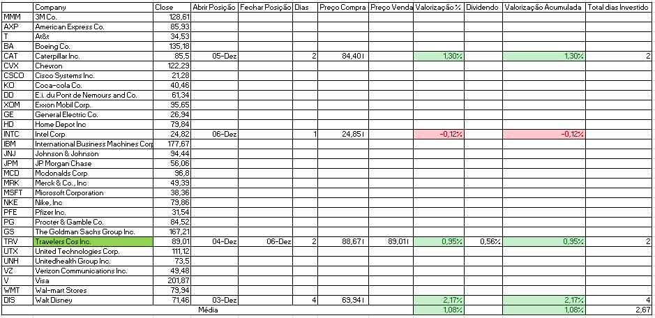 As acções analisadas são as do Dow Jones e venho sempre aqui indicar quando der ordem de venda ou compra, apresentando uma tabela com os ganhos/perdas acumulados.