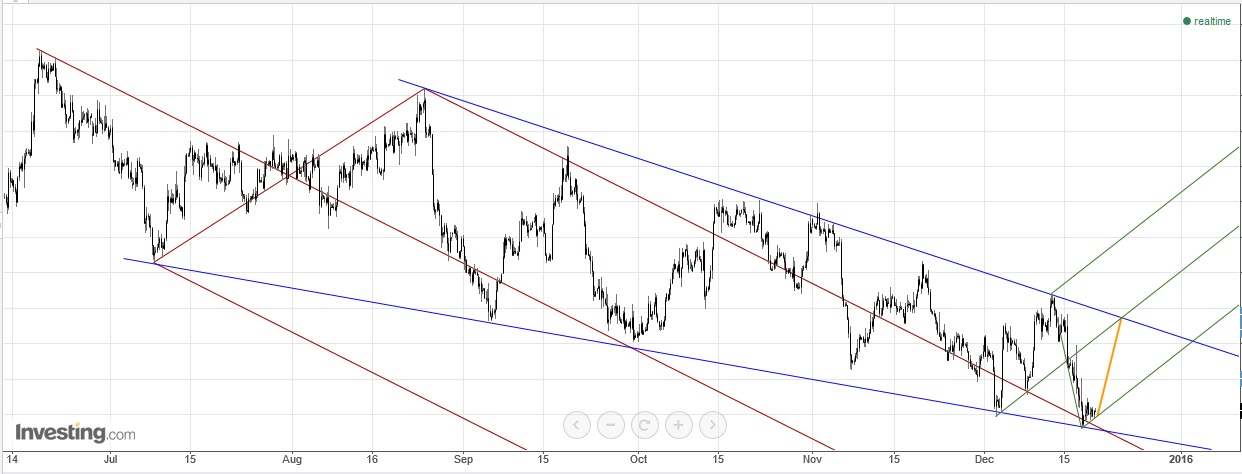 Dado que no negócio pendente a stop loss está em b/e e há capital disponível, é altura de alinhavar uma nova oportunidade de investimento e partilhar uma técnica muito simples, aliás já anteriormente aflorada (compra do duplo fundo em forma de linha, a executar ao mercado na 2ª feira), coadjuvada por um "fundamental": o rally do Natal ortodoxo. É um negócio para durar cerca de 30-45 dias,o que foge ao que é tradicional neste tópico e se deve à circunstância de o FI Alquimia 2015 estar prestes a terminar e o FI Aquima 2016 só admitir um investimento de cada vez.