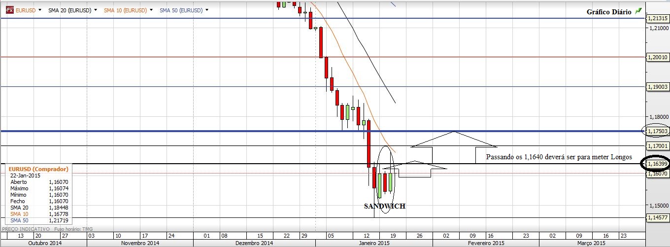 Do meu lado estava short EURUSD desde 1,1806 e fechei a posição a 1,1756 uns 20m antes do SNB mandar a bomba e estava todo contente pelos meus 50 pips....Mas pronto, foi a minha 3ª entrada do mês e todas correram bem pelo que aguardemos pelo próximo pullback para mais um short.