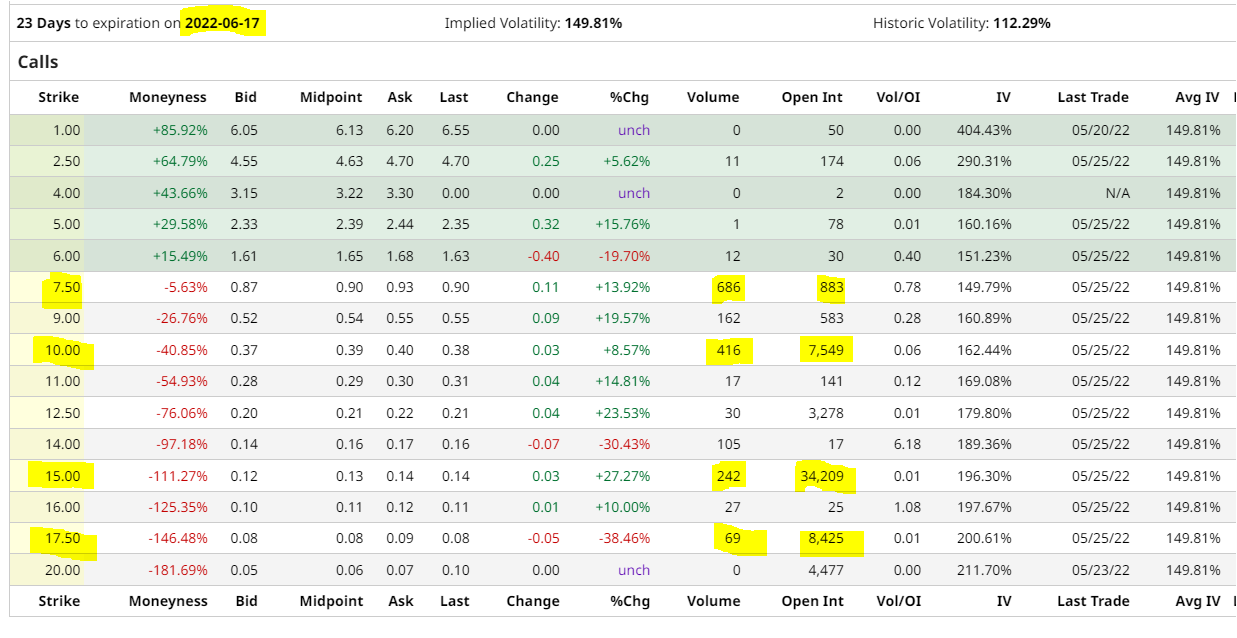 Há quem aposte (e pague para ver) que a Farfetch cotará a $10,00, $15,00 e $17,50 dentro de 23 dias.