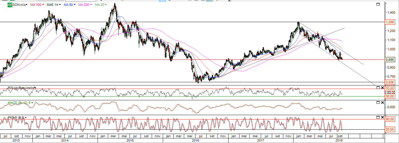 SON , gráfico atualizado , mantendo-se a cotada dentro do canal descendente que vem desde Janeiro 2018.