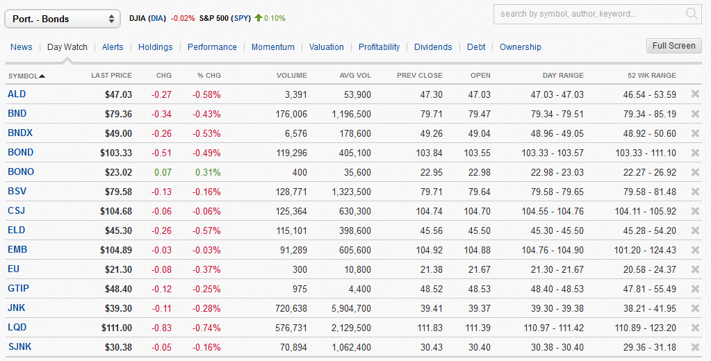 E faço a ronda pelas várias watchlist que criei, mercados de acções, moeda, obrigações, matérias-primas, REIT, sectores e capitalizações das acções, para sentir a evolução dos mercados.