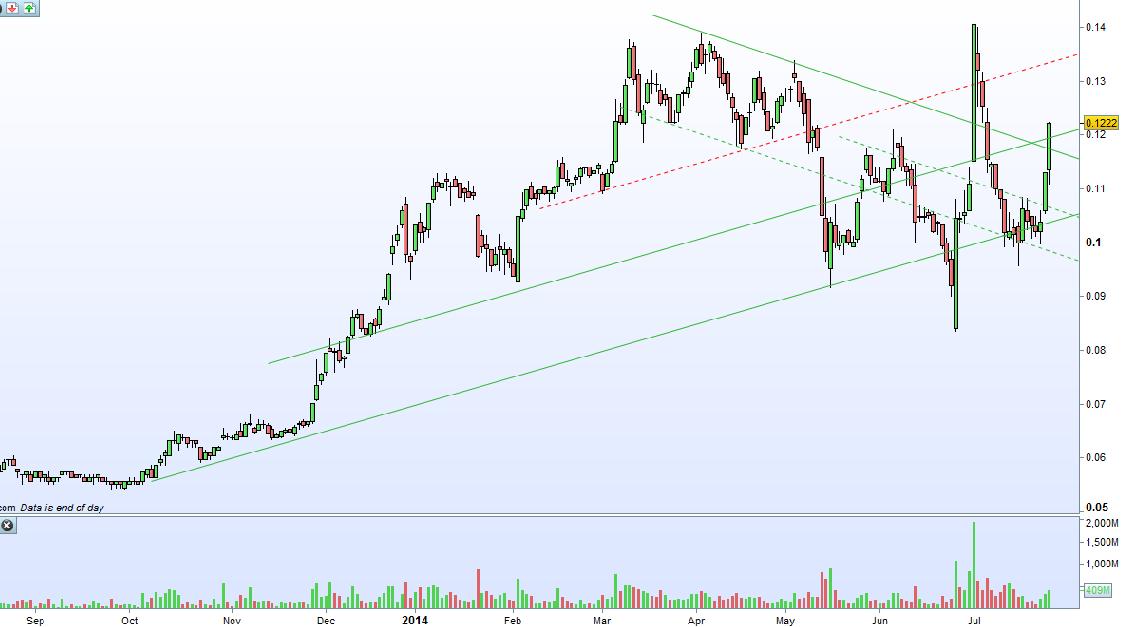 the stock is above its 20 and 50 day MA (respectively at 0.11 and 0.11).