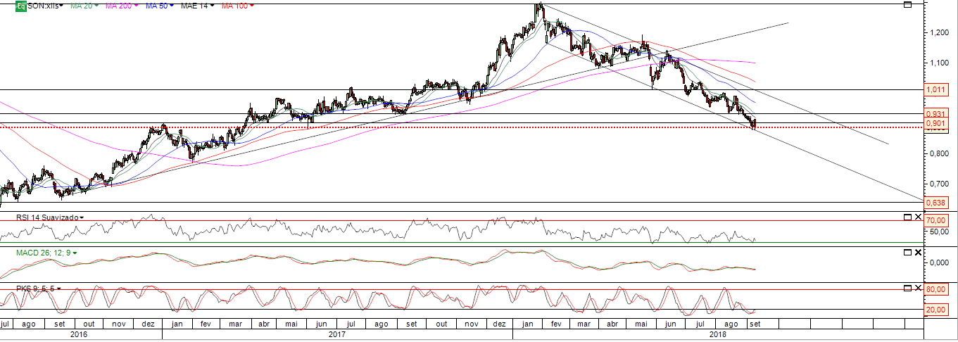 Obviamente os fundamentais da SON não têm nada a ver com os fundamentais da MOTA e no entanto nesta fase de correção do mercado ambas seguem perfeitos canais descendentes dentro do atual panorama AT seguido pelo mercado.