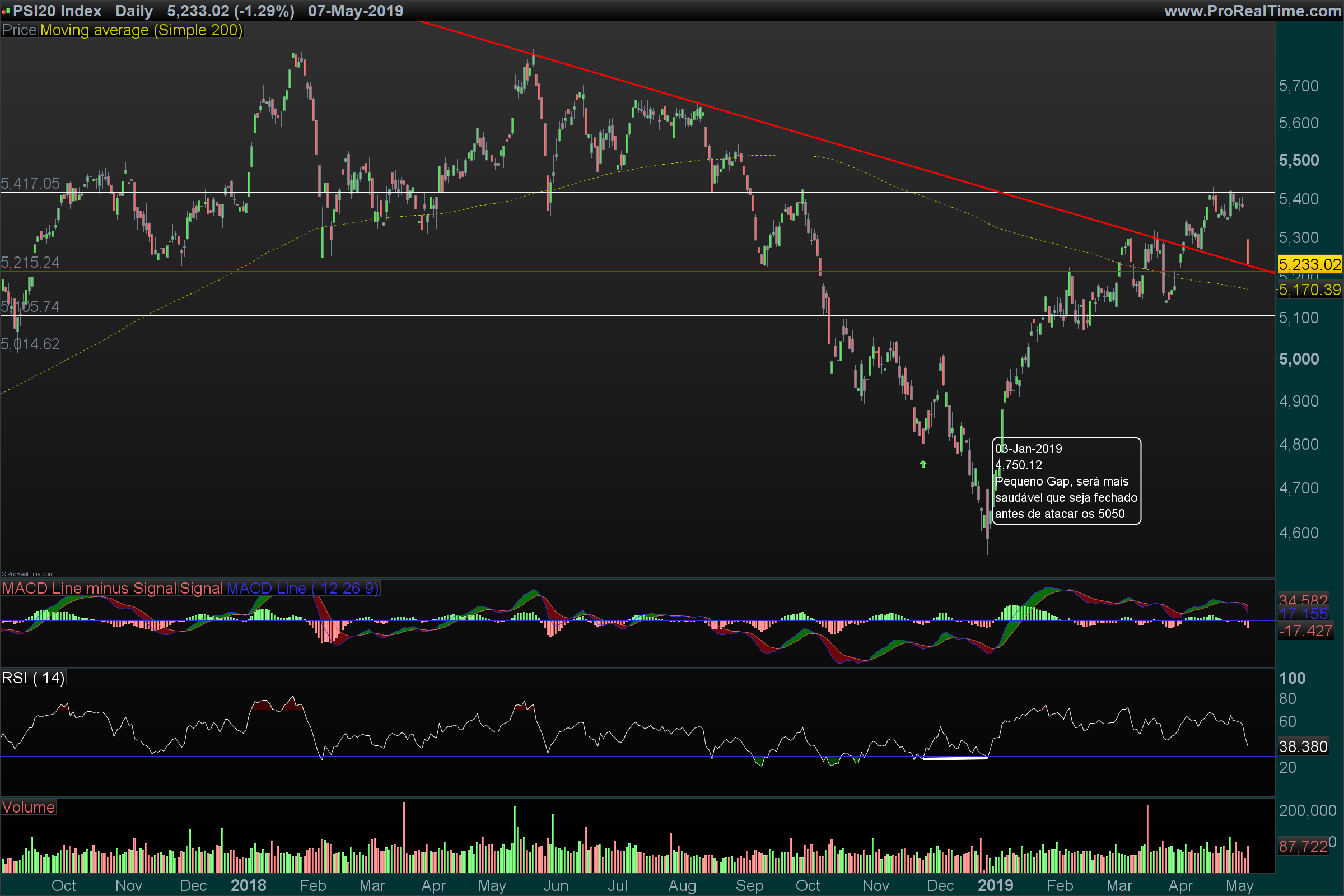 Resta saber se o suporte aguenta ou se vai testar novamente a zona dos 5000. Duvido muito que deixe o gap aberto mas tem aspecto de estar a entrar num ciclo menos bom no curto prazo.