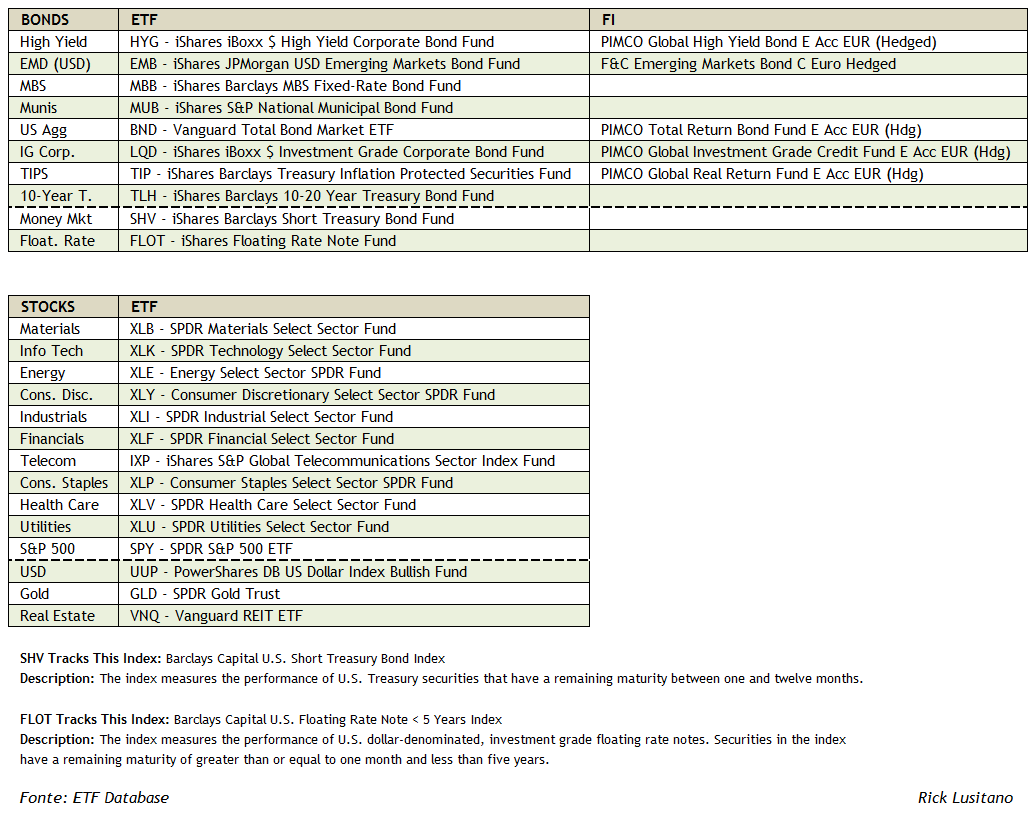 Há uns posts atrás, antes de se falar de novos fundos (comecei a falar de fundos novos para evitar falar da realidade e das más noticias na carteira), falou-se da realidade (desde a página 191), coloquei um quadro com os desempenhos dos vários sub-sectores do REIT devido aos receios das taxas de juro, retirado de um artigo sobre este tema (coloquei o link para o artigo), também coloquei imagens dos papers da JPMorgan (página 193), sobre o que as possíveis subidas/descidas das Yields e taxas de juro poderiam causar nas várias categorias de obrigações e sectores de acções, incluindo as correlações dos sectores do S&P500 com as taxas. Depois é tentar fazer uma alocação ao nosso gosto pessoal. Os meus posts sobre os activos e seus desempenhos: