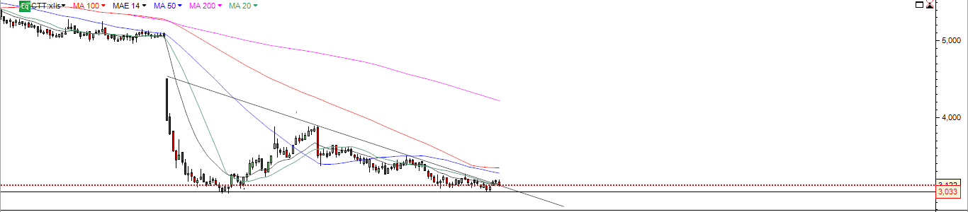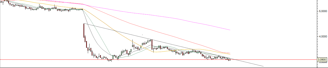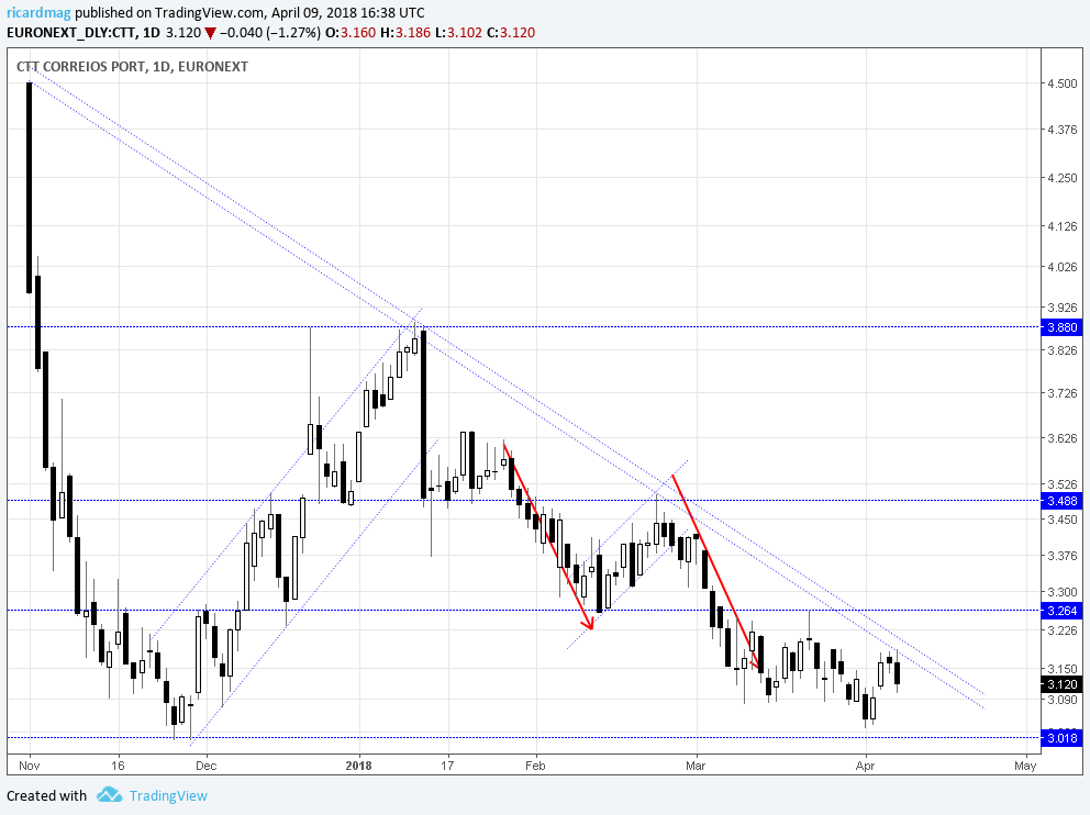 Estou dentro, com um stop-loss ligeiramente abaixo dos 3€ e com esperança que se consiga confirmar uma inversão para breve.