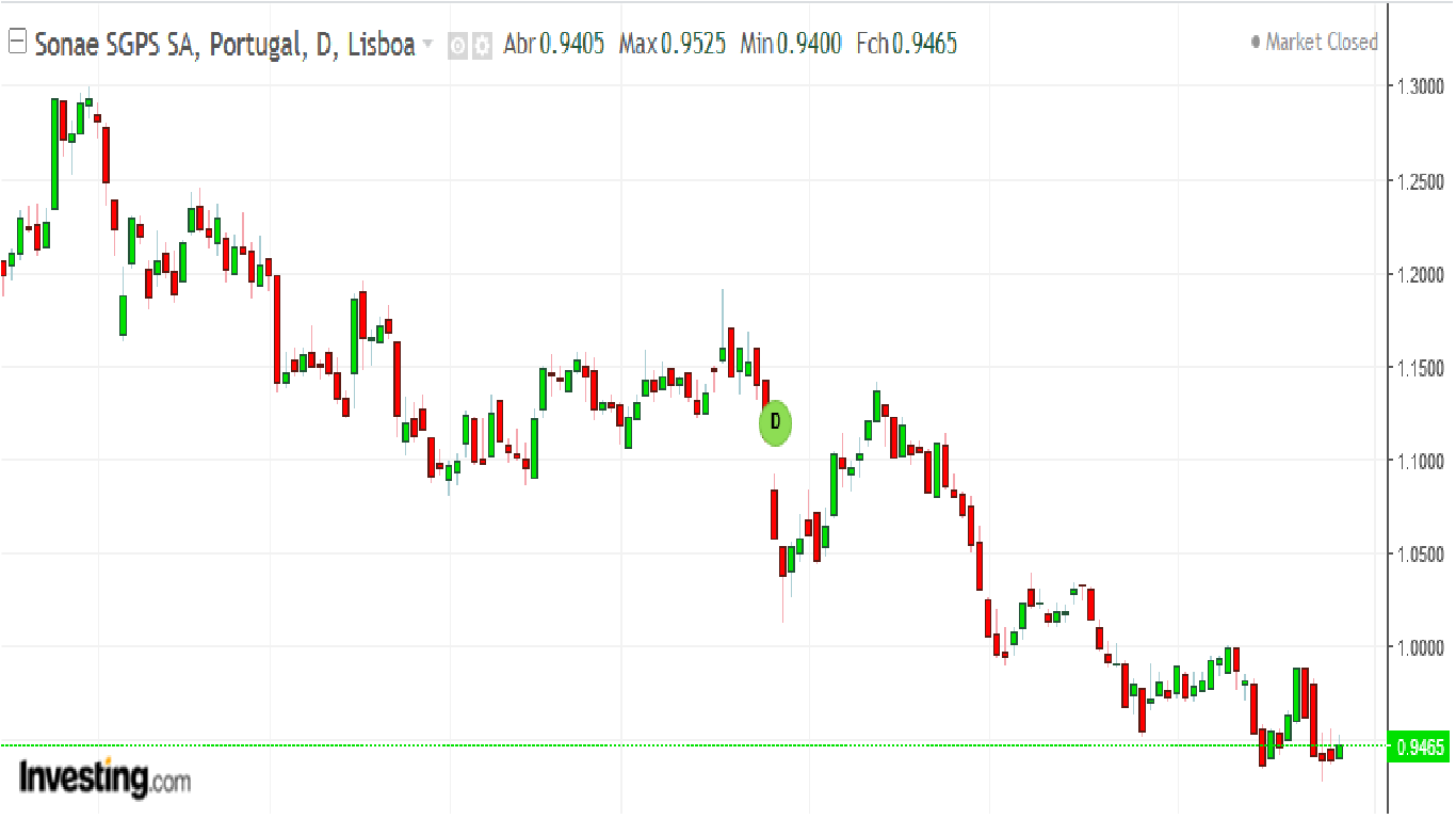Quem investe nesta cotada desde Máximos de Janeiro de 2018 tem apenas ainda uma desvalorização de 30% , de 1.30 para 0.94