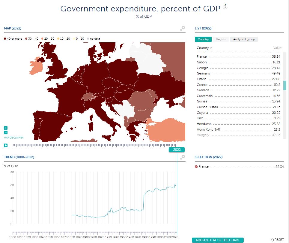 mas desde que está no poder a França aumentou o tamanho da garras do estado uns 6% ao passar a despesa de 53% para 59% do PIB.