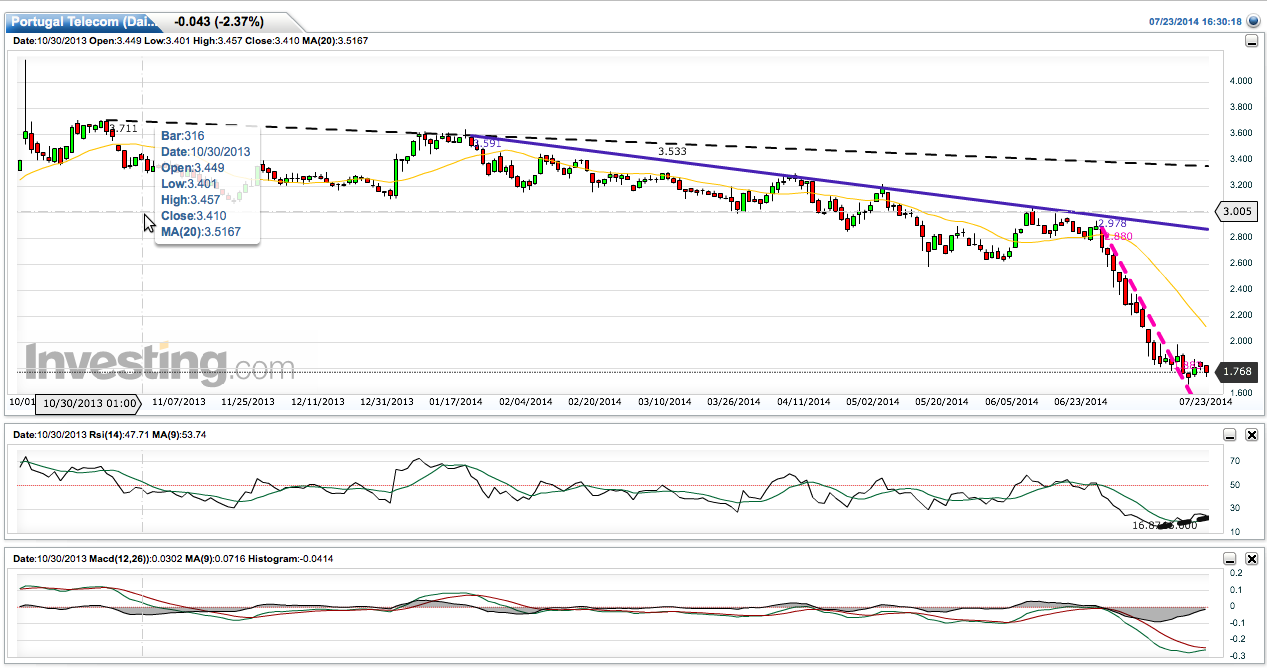 Como as perspectivas de bons resultados (lucros, capex, aumento de clientes e investimentos chave em fibra), a anunciar no dia 4 de Agosto vou reforçar a minha posição de 20% para 60% do que pretendo no título. Desta vez faze-lo via ADR's USA porque tenho a expectativa que a queda lá coerentemente se mantenha. Ordem já dada para amanhã a .6usd (risco muito elevado).