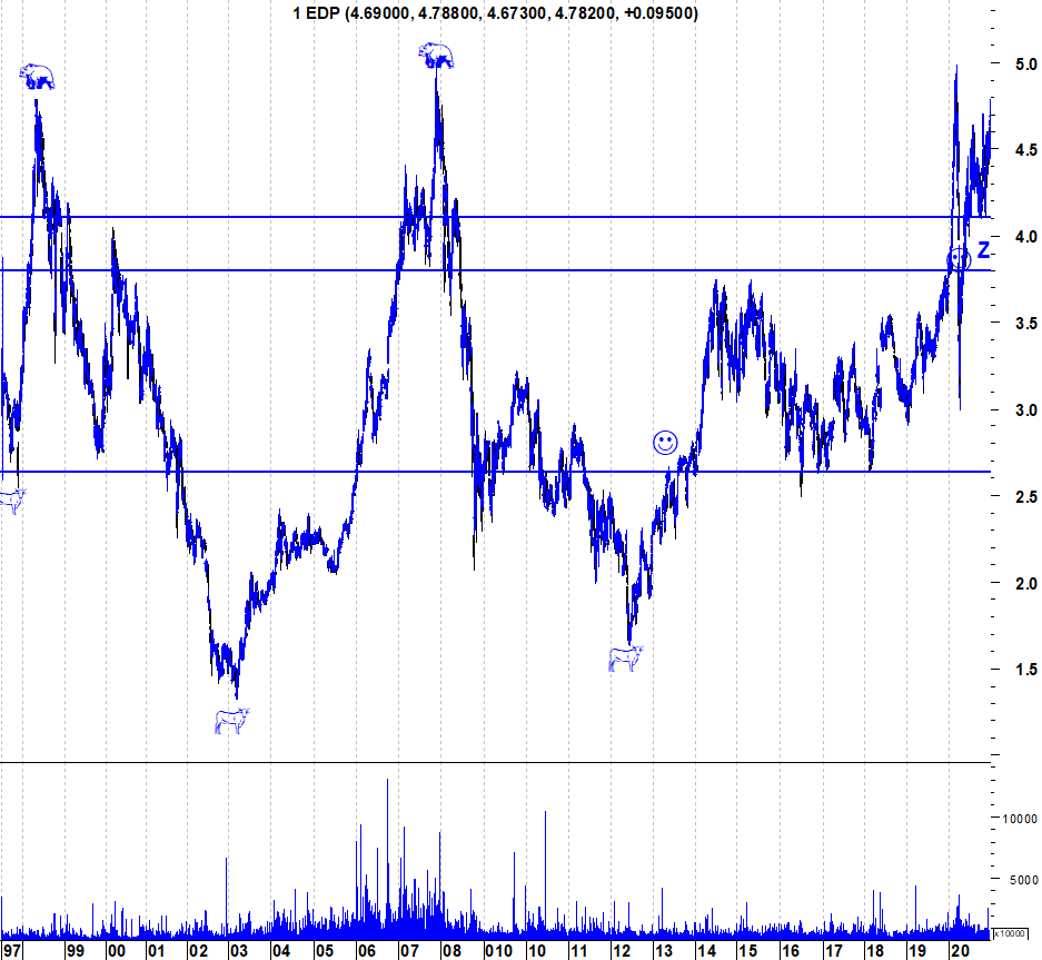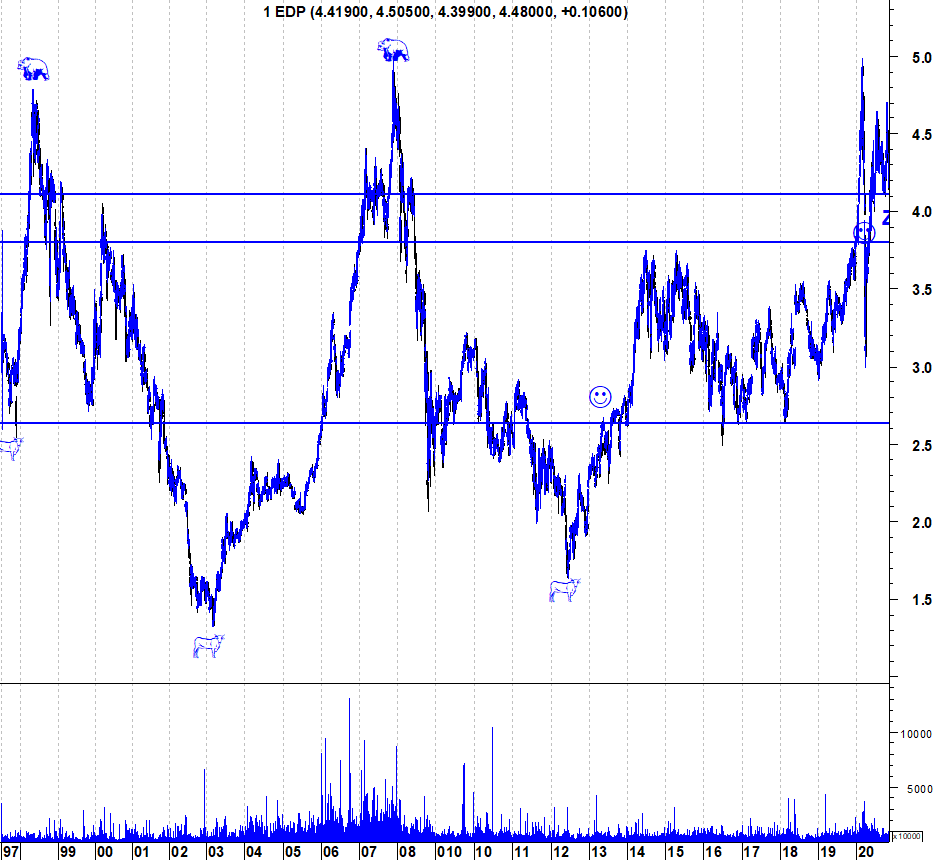 A EDP já foi uma acção muito popular entre os pequenos investidores. Por mais paradoxal que pareça, nos últimos anos as suas atenções estão mais viradas para outras acções, algumas das quais vivem “Bear Markets” seculares. A atracção pelo abismo leva os investidores a ignorarem as acções que sobem. No caso da EDP, já lá vão mais de 8 anos de um dos raros “Bull Markets” da Bolsa portuguesa.