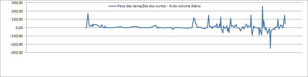 Recalculei o indicador e continua a acontecer em dias consecutivos haver volumes dos curtos maiores que o volume do dia.