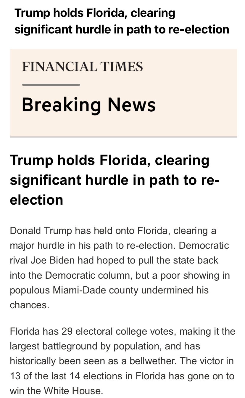 Vamos esperar pelos outros Estados, mas havia sondagens que davam vitória de 4% a Biden na Florida.