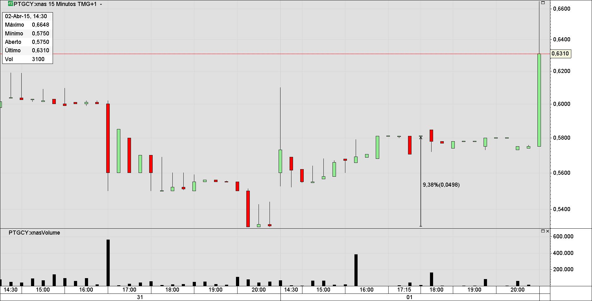 A PTCGY em NYSE abri com um gap-up de 11%.